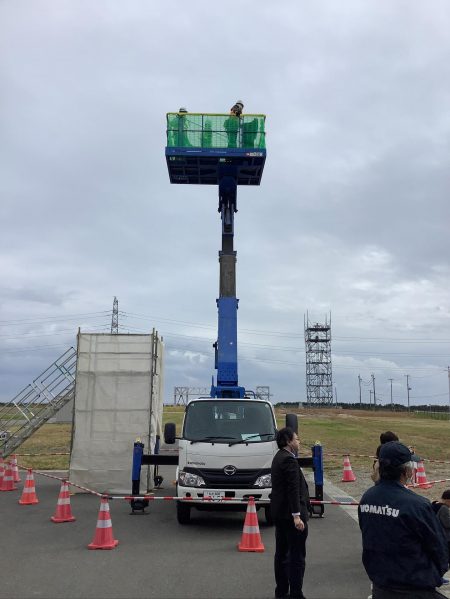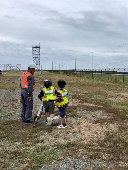 昨年に引き続き、「建設業」の仕事を知ってもらうため、福島県建設業協会を中心に職業体験のブースを設け、相馬支部会員である当社からも2名の社員を派遣し協力をしました。子供たちも初めて触る測量機器や重機、高所作業車などを楽しんでいたようでした。
